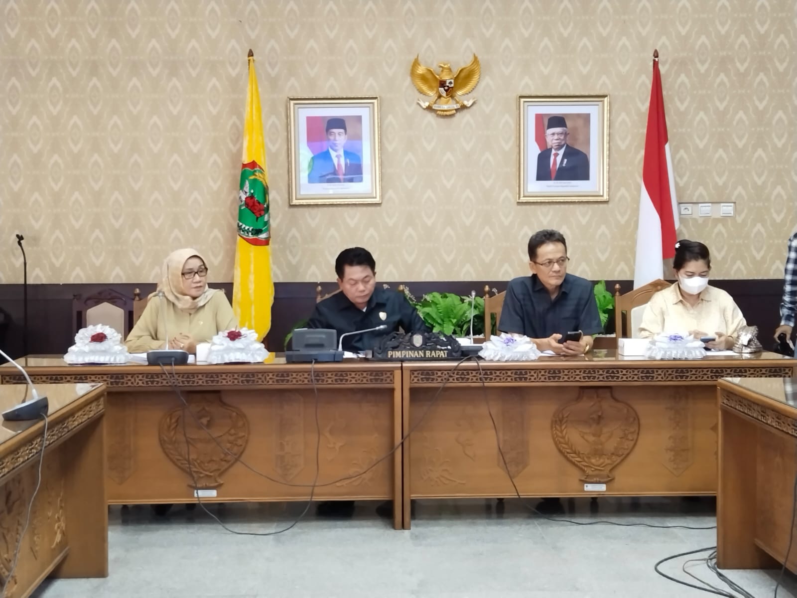 Ketua DPRD Kalteng Wiyatno (dua dari kiri) bersama unsur pimpinan saat menerima mahasiswa UPR.